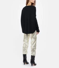 Pull en cachemire noir. Col en V. Manches longues. Coupe oversize et base arrondie.