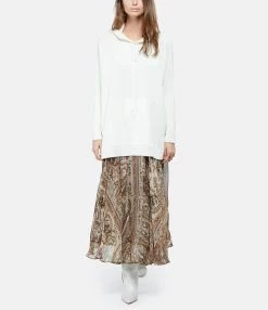 Hoodie en cachemire blanc. Capuche avec liens de serrage. Col rond. Manches longues. Poche kangourou. Coupe oversize. Base droite. Non doublé.