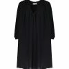 Robe longue côtelée noire. Manches courtes. Col rond. Coupe ajustée puis évasé. Base droite.
