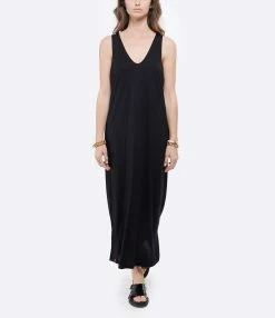 Robe longue en bambou noir. Col V. Base droite. Non doublé.