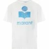 Tee-shirt en bambou blanc. Col en V. Manches courtes. Coupe oversize. Base droite. Non doublé.