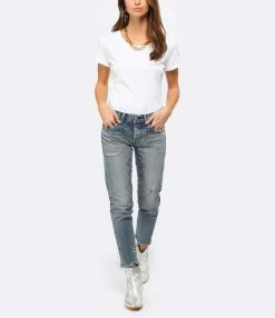 Conseil Stylistique :Un basique à avoir dans sa garde-robe, ce tee-shirt se mariera avec toutes vos tenues. Pour un look décontracté associez-le à une jupe en jean et des baskets.