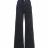 Jean en denim bleu. Taille haute. Cinq poches dont une poche briquet. Fermeture par zip et bouton. Coupe flare.
