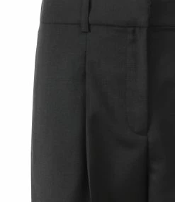 Pantalon à pinces en lin beige. Taille haute. Passants pour ceinture. Deux poches fendues. Une poche passepoilée à l’arrière. Fermeture par zip et agrafes. Coupe large. Base droite. Doublé.