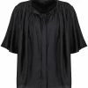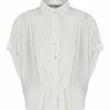 Chemise en lin blanc. Col chemisier. Manches courtes. Fermeture par boutons. Coupe large. Base arrondie. Non doublé.