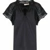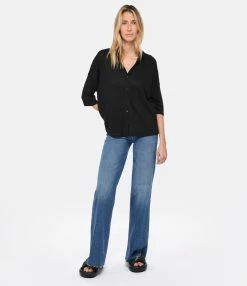 Chemise en lin noir. Col chemisier. Manches courtes. Fermeture par boutons. Coupe large. Base arrondie. Non doublé.