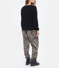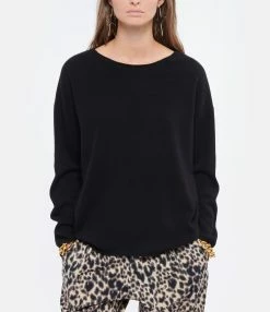Pull en cachemire noir. Col bateau. Manches longues. Coupe droite. Base droite. Non doublé.