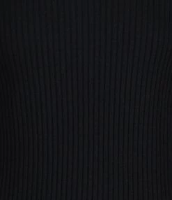 Pull en cachemire noir. Col bateau. Manches longues. Coupe droite. Base droite. Non doublé.