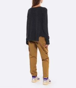 Pull en laine et cachemire gris anthracite chiné. Col bateau. Manches longues. Coupe droite. Base droite. Fentes latérales.