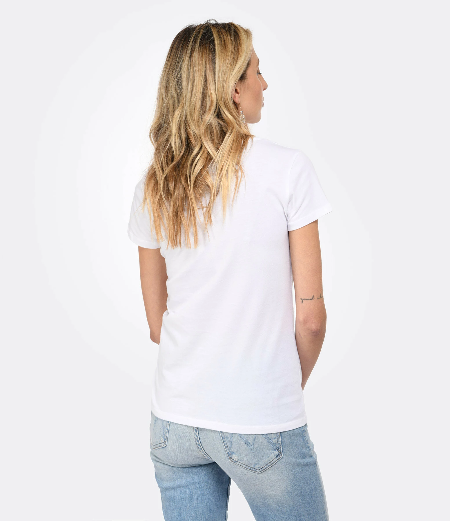 Tee-shirt manches courtes en coton blanc. Col rond. Base droite.