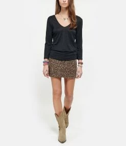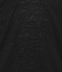 Tee-shirt en lin noir. Manches 3/4. Décolleté en V à l’avant et dans le dos. Coupe droite. Base droite.