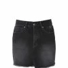 Jupe courte en coton noir ornée de fronces et de volants. Taille élastiquée. Coupe évasée. Base à volants.