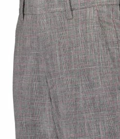 Pantalon en laine à carreaux noir et rose. Taille haute. Fermeture par zip et agrafe. Deux poches avant et deux poches passepoilées à l’arrière. Coupe droite.