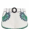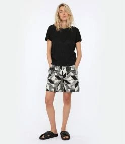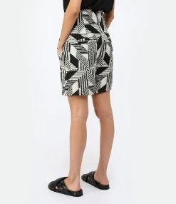 Short en coton noir à imprimés écru. Taille haute. Fermeture par zip et bouton pression. Lien à nouer autour de la taille. Quatre poches.