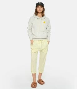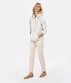 Sweatshirt en coton mélangé écru chiné avec le logo flocké velours en jaune sur la poitrine. Col à capuche avec liens de serrage. Une poche kangourou à l’avant. Manches longues avec poignets côtelés. Coupe ample. Base droite côtelée.