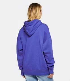 Sweatshirt en coton molletonné mélangé bleu avec le logo MARANT flocké velours en deux teintes de bleu contrastantes sur le devant. Col à capuche avec liens de serrage. Manches longues avec poignets côtelés. Une poche kangourou sur le devant. Coupe ample. Base droite côtelée.