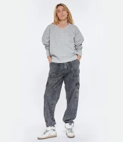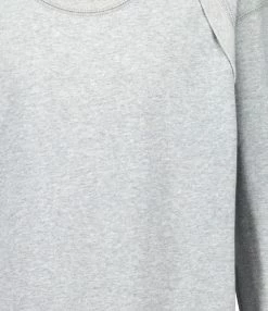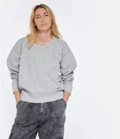 Sweatshirt en coton gris. Col rond. Manches longues. Base et poignets resserrés par bords côtes. Coupe droite, base droite.