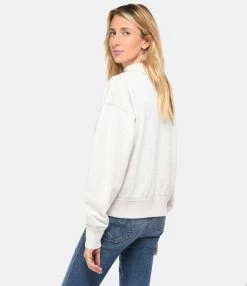 Sweatshirt en coton écru. Logo “Isabel Marant” en velours jaune à l’avant. Col montant. Manches longues. Coupe ample. Base droite.
