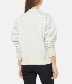 Sweatshirt en coton molletonné mélangé beige. Logo en flocage velours noir sur le devant. Col montant côtelé. Manches longues avec poignets côtelés. Coupe droite. Base droite côtelée.