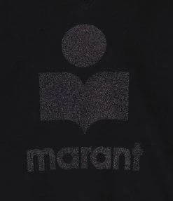 Sweatshirt en coton molletonné mélangé noir. Logo en flocage paillette noir sur le devant. Col montant côtelé. Manches longues avec poignets côtelés. Coupe droite. Base droite côtelée.