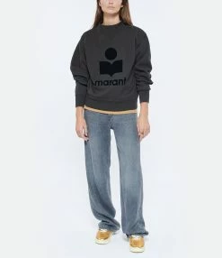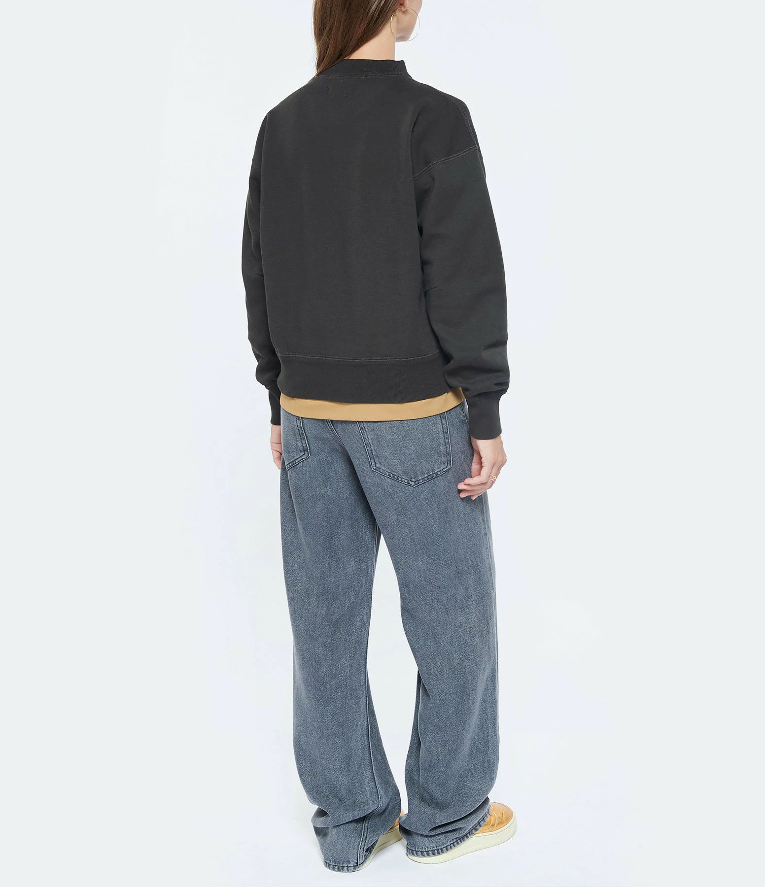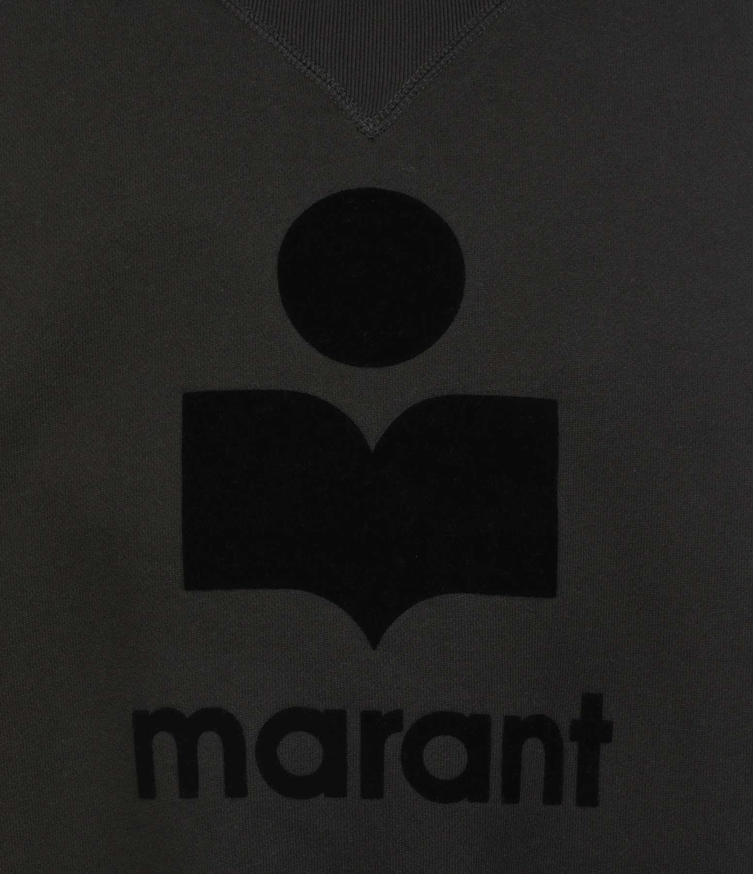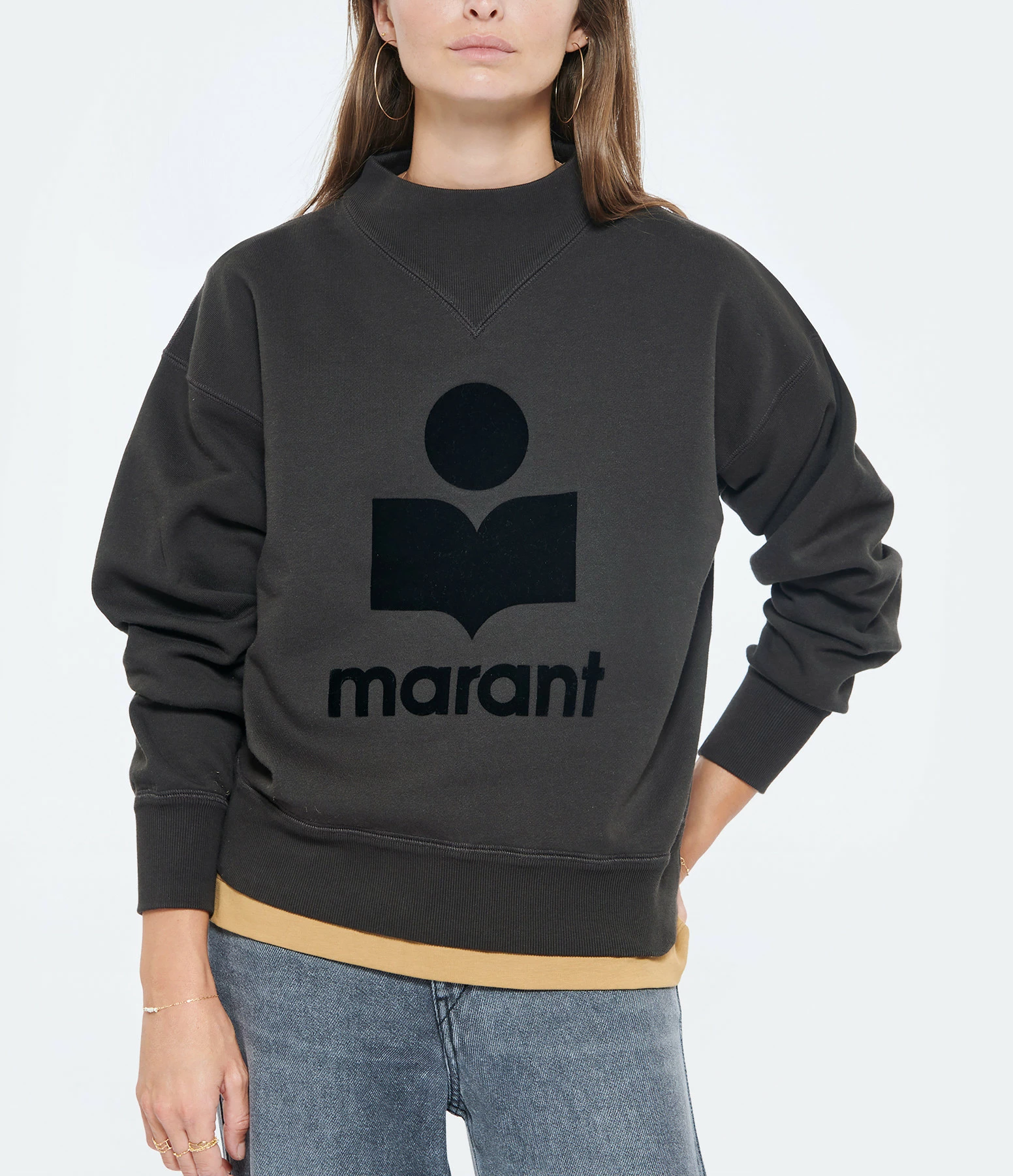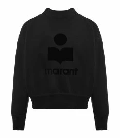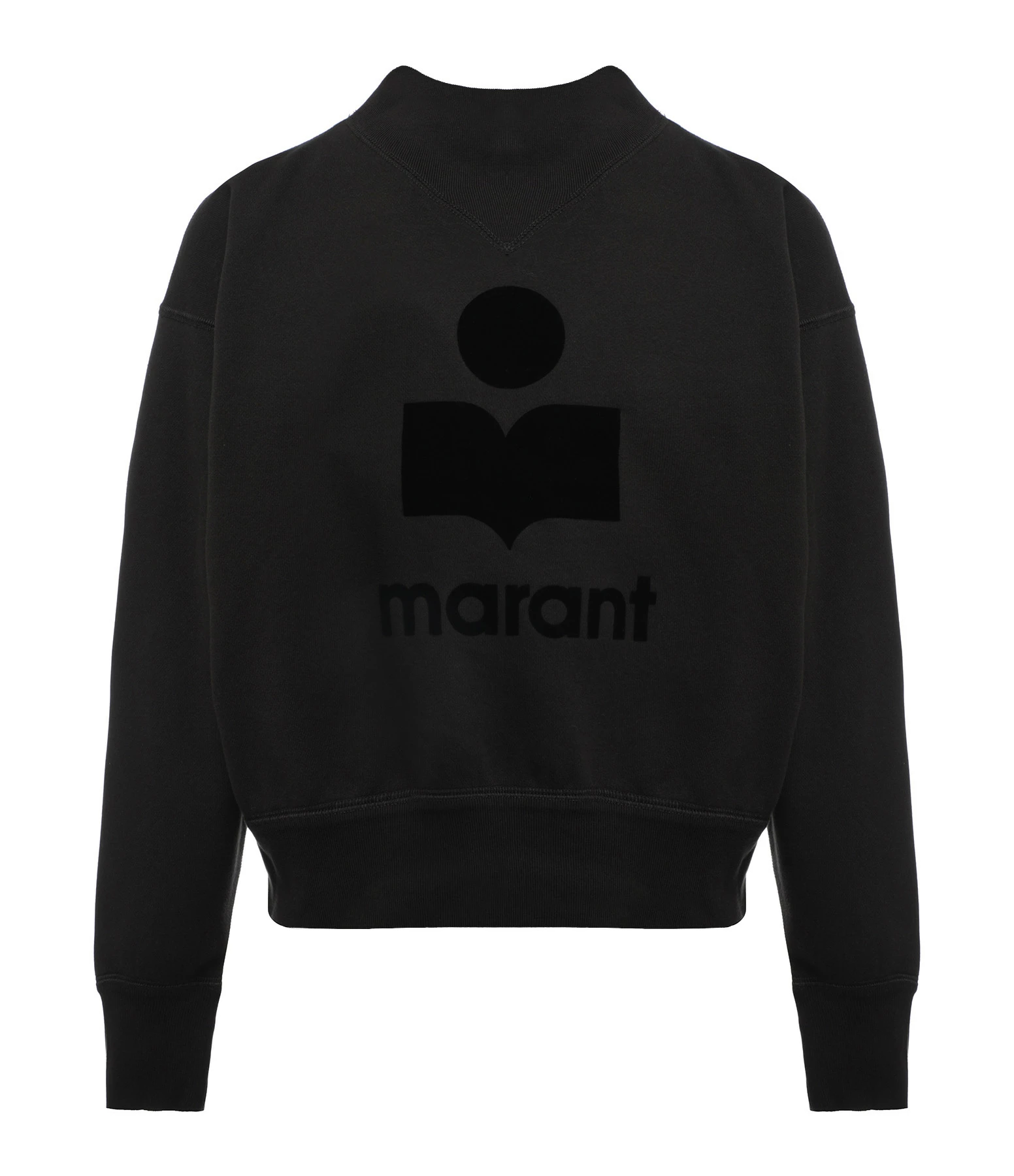 Sweatshirt en coton noir. Logo “Isabel Marant” en velours noir à l’avant. Col montant. Manches longues. Coupe ample. Base droite.