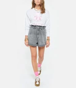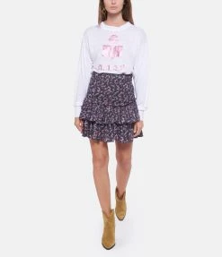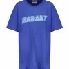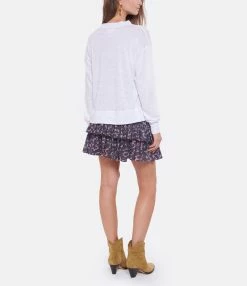Tee-shirt en lin blanc. Logo “Isabel Marant” rose métallisé. Col rond. Manches longues. Coupe droite. Base droite.