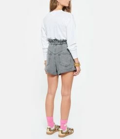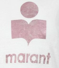 Tee-shirt en lin blanc. Logo “Isabel Marant” rose métallisé. Col rond. Manches longues. Coupe droite. Base droite.