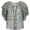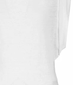 Tee-shirt en lin blanc. Col rond côtelé. Épaules froncées et élastiquées. Manches courtes avec bords rabattus. Coupe droite. Base arrondie.