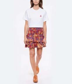 Tee-shirt en coton blanc. Petit logo rouge floqué sur la poitrine et grand logo rouge floqué dans le dos. Col rond. Manches courtes. Coupe droite. Base droite.