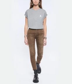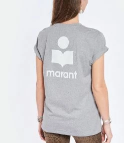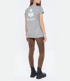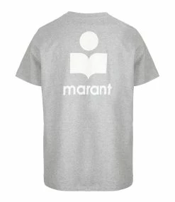 Tee-shirt en coton gris. Petit logo blanc floqué sur la poitrine et grand logo blanc floqué dans le dos. Col rond. Manches courtes. Coupe droite. Base droite.