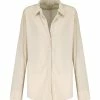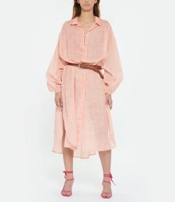 Longue chemise souple en coton rose. Manches longues bouffantes élastiquées aux poignets. Col chemisier. Fermeture par boutons sur le devant. Fentes latérales au bas. Coupe droite. Base droite.