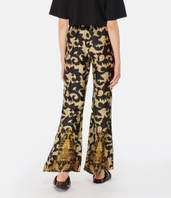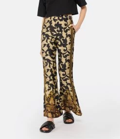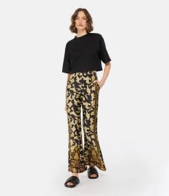 Pantalon en tissu fluide à imprimé floral dans des tons marron. Taille élastiquée. Deux poches italiennes. Coupe large. Base droite.