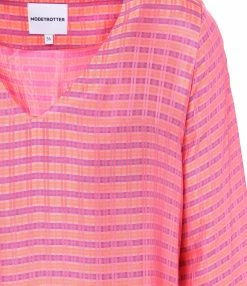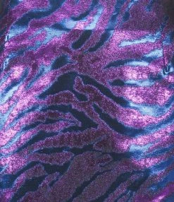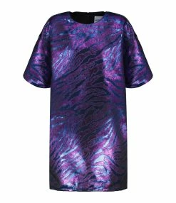 Robe courte irisée, à imprimé zébré violet bleu. Manches courtes. Col rond. Coupe ample. Longueur mi-cuisses.