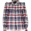 Chemise bleu nuit à manches courtes. Col chemisier. Fermeture par boutons sur le devant. Coupe ample. Base droite.