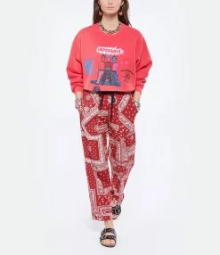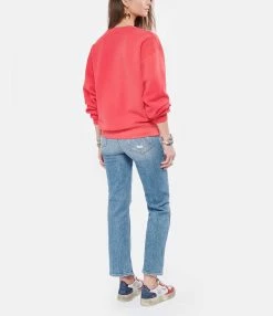 Sweatshirt en coton rouge sérigraphie “impossible” volontairement craquelée. Col rond. Manches longues. Coupe droite. Base droite.