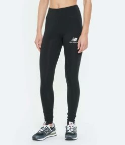 Legging en coton noir. Logo sur la jambe gauche. Taille haute. Coupe ajustée.