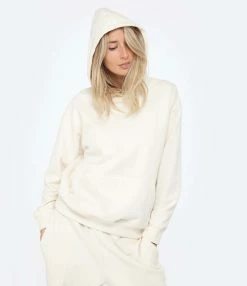 Sweatshirt à capuche en coton beige. Logo au centre de la poitrine. Manches longues. Poche kangourou. Coupe droite. Base droite.