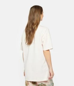 Tee-shirt en coton rose. Logo au centre de la poitrine. Manches courtes. Col ras du cou. Coupe droite. Base droite.