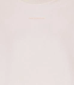 Tee-shirt court en coton blanc avec inscription “new balance” sur la poitrine et logo sur la manche droite. Col rond. Manches courtes. Coupe oversize. Base droite.