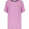 Tee-shirt en coton gris délavé orné d’un aigle, d’inscriptions multicolores et de deux badges et un médiator sur le devant. Manches courtes. Col rond. Coupe droite. Base droite.
