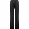 Pantalon en soie noire. Deux poches italiennes. Deux poches passepoilées dans le dos. Passants pour ceinture. Braguette zippée et bouton. Plis au niveau de la taille. Coupe droite. Base droite.