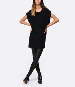 Top sans manches noir. Col bénitier. Coupe droite. Base droite.
