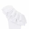 Top noir à manches élastiquées courtes chauve-souris. Col montant arrondi. Coupe ample. Base cintrée élastiquée.