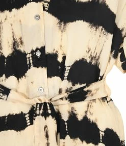 Jupe à imprimé orange et rose effet rayures tie & dye. Taille élastiquée. Deux poches italiennes. Coupe ample. Base droite.