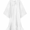 Robe ample en coton noir à volants. Manches trois-quarts bouffantes. Col rond froncé ajustable avec cordons de serrage sur le devant. Volants sur le bas.