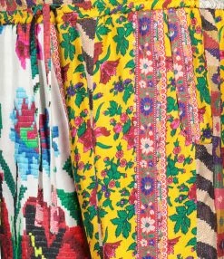 Pantalon en soie à imprimé beige. Taille élastiquée. Poches latérales. Coupe droite et ample. Base droite.