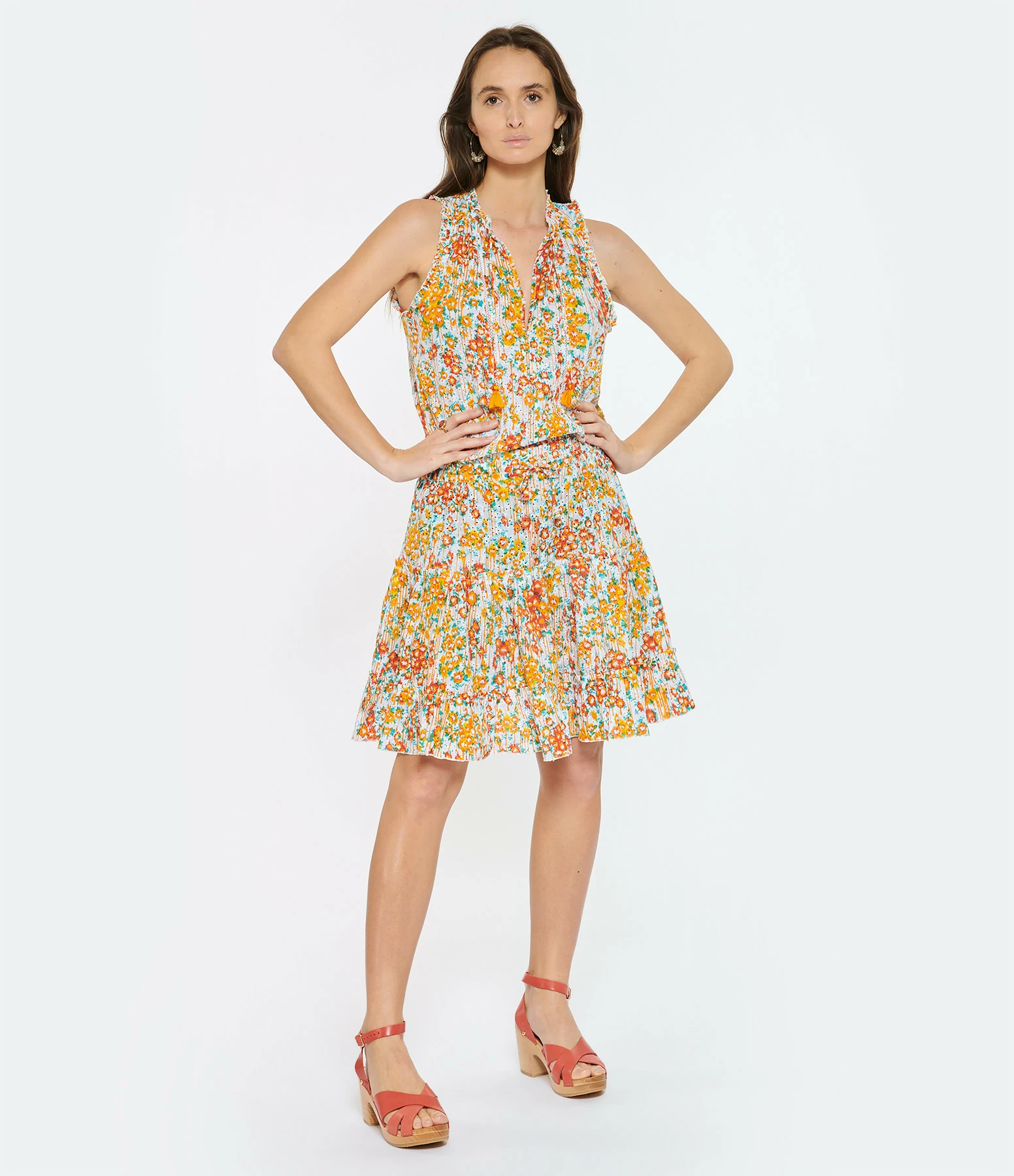 Poupette St Barth Robe Courte Clara Coton Brodé Orange