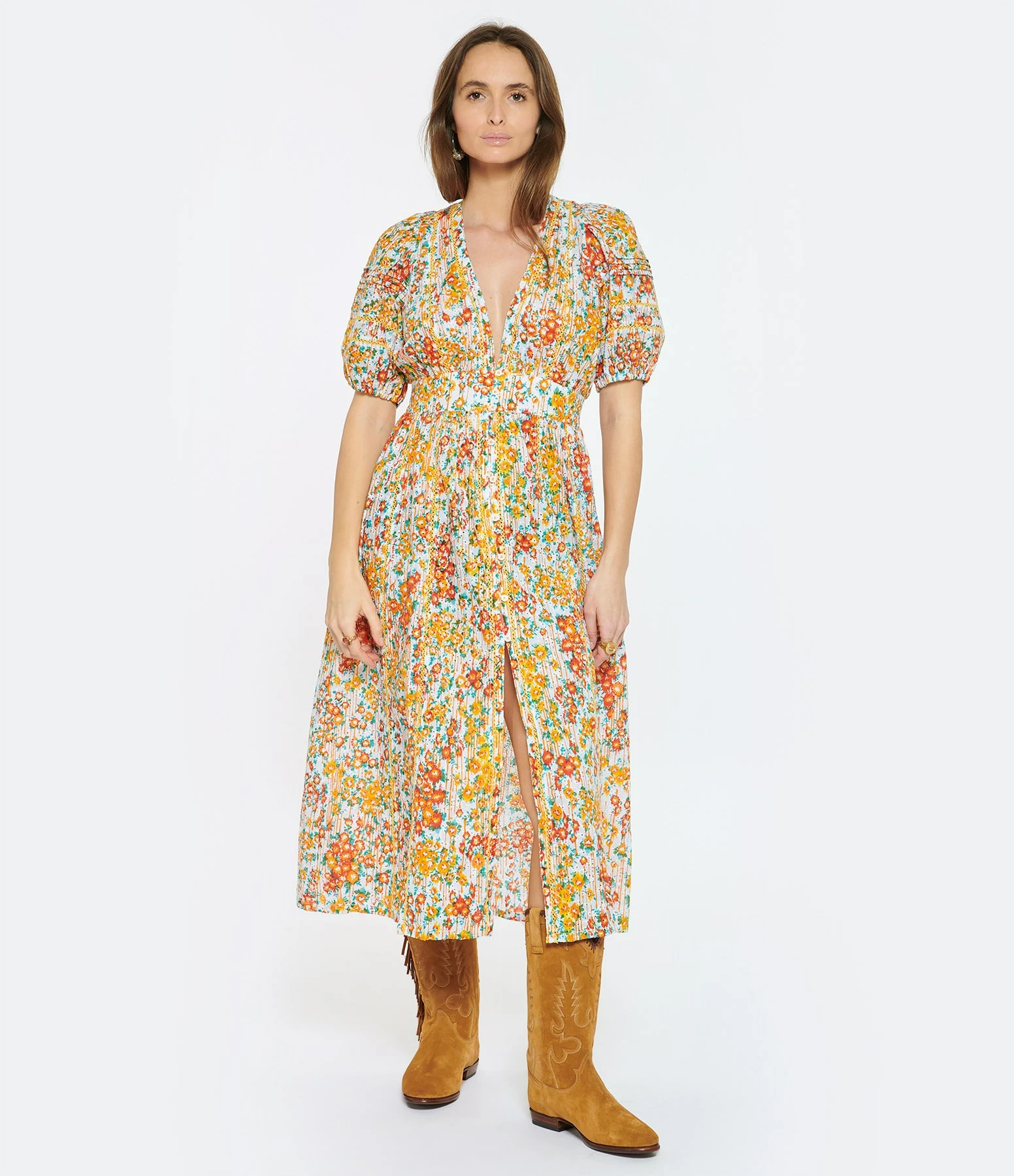 Poupette St Barth Robe Longue Reine Coton Brodé Orange