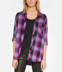 Chemise à carreaux multicolore. Col chemise. Manches longues. Fermeture boutonnée. Une poche plaquée poitrine. Coupe droite. Base arrondie.