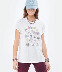 Tee-shirt en coton blanc imprimé illustrations. Col rond. Manches courtes. Coupe droite. Base droite.